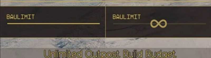 Скрипт Bat, позволяющий постоянно устанавливать неограниченный бюджет на сборку outpost, работает для любого outpost. это позволяет вам создавать в вашем аванпосте столько объектов, сколько вам нравится, пожалуйста, имейте в виду, что строительство многого может повлиять на вашу производительность! используйте на свой страх и риск и сделайте резервную копию своих сохранений раньше!!