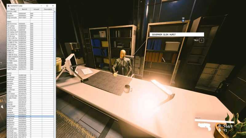 Как только программа запустится, просто нажмите alt-tab в Starfield и выберите нужный объект или привилегию из списка, щелкнув по нему и указав количество, или просто измените сумму в консоли.Нажав на название, вы поместите соответствующую команду в ваш буфер обмена.переключитесь обратно на Starfield, откройте консоль и используйте CTRL-v.